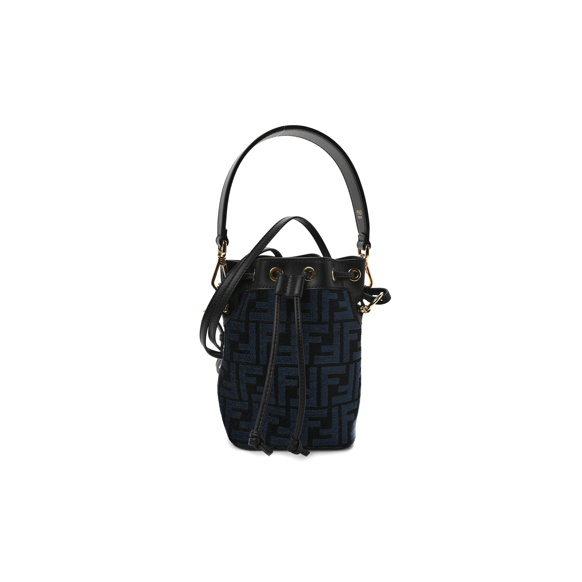 F**di CHENILLE VITELLO KING FF MINI MON TRESOR BUCKET BAG BLUE BLACK (18*11*10cm) Master Quality