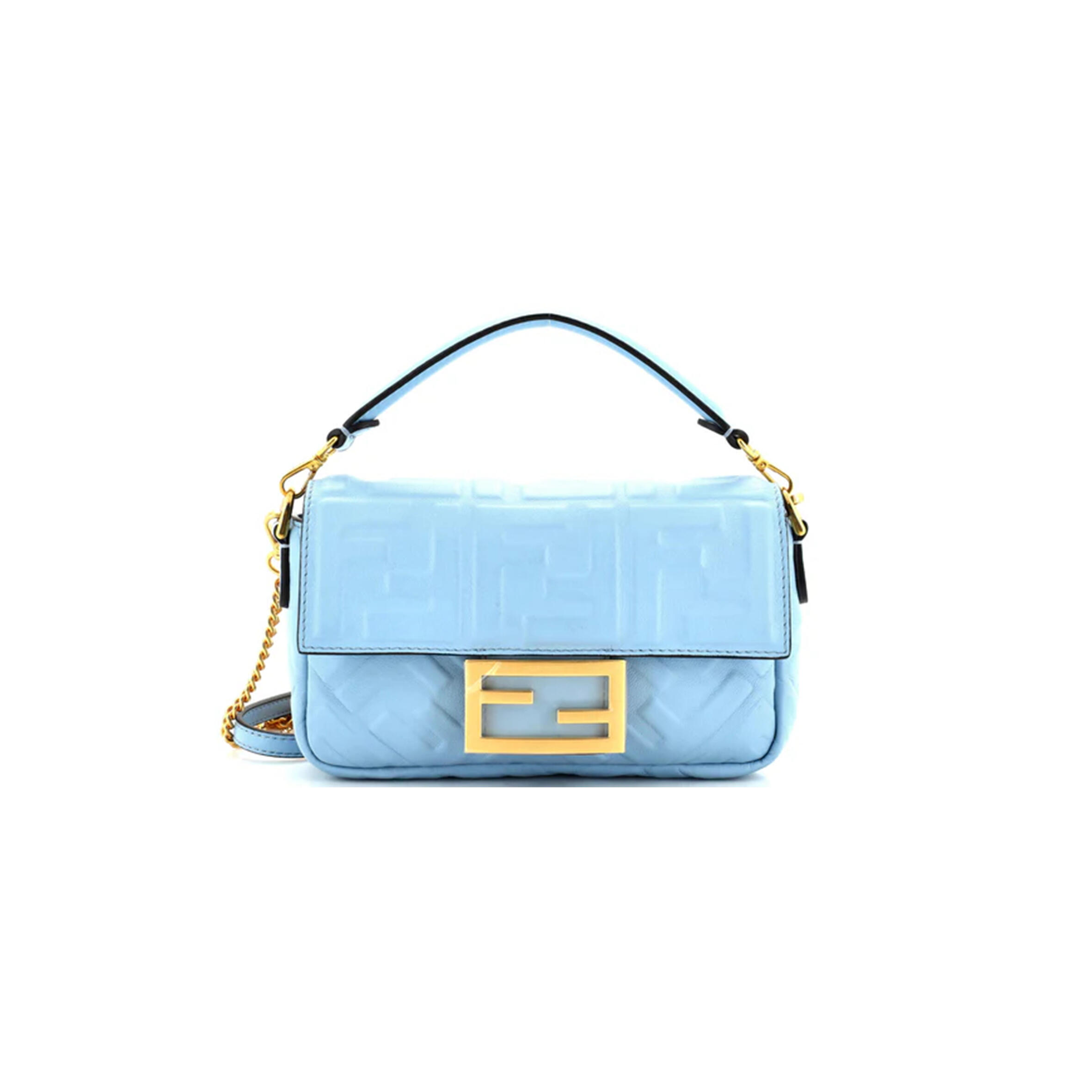 F**di Small Baguette Bag In Blue FF Nappa Leather Master Quality
