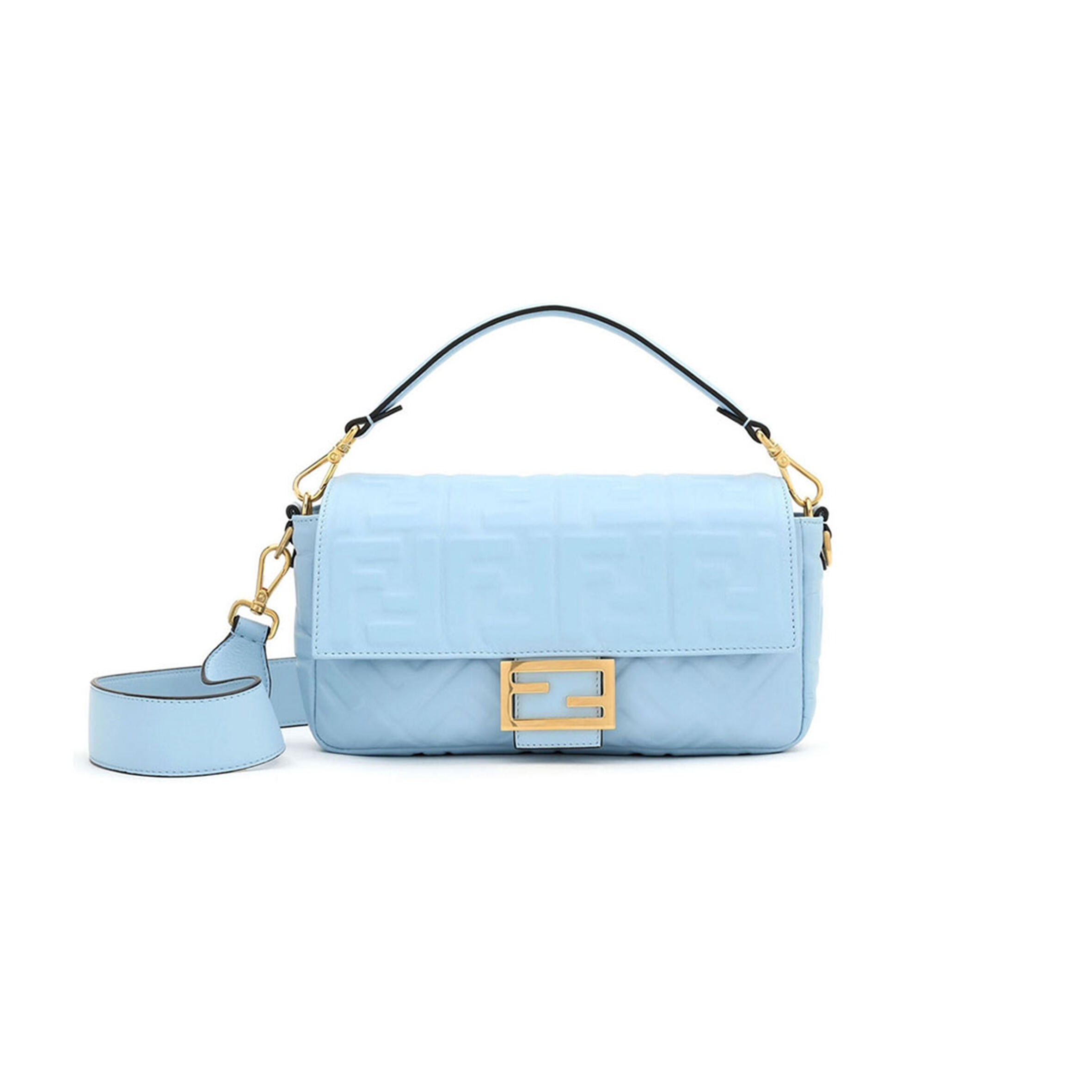 F**di Baguette Medium Bag Cuoio Romano Calfskin with FF Buckle Light Blue 27x6x15cm 8600 Master Quality