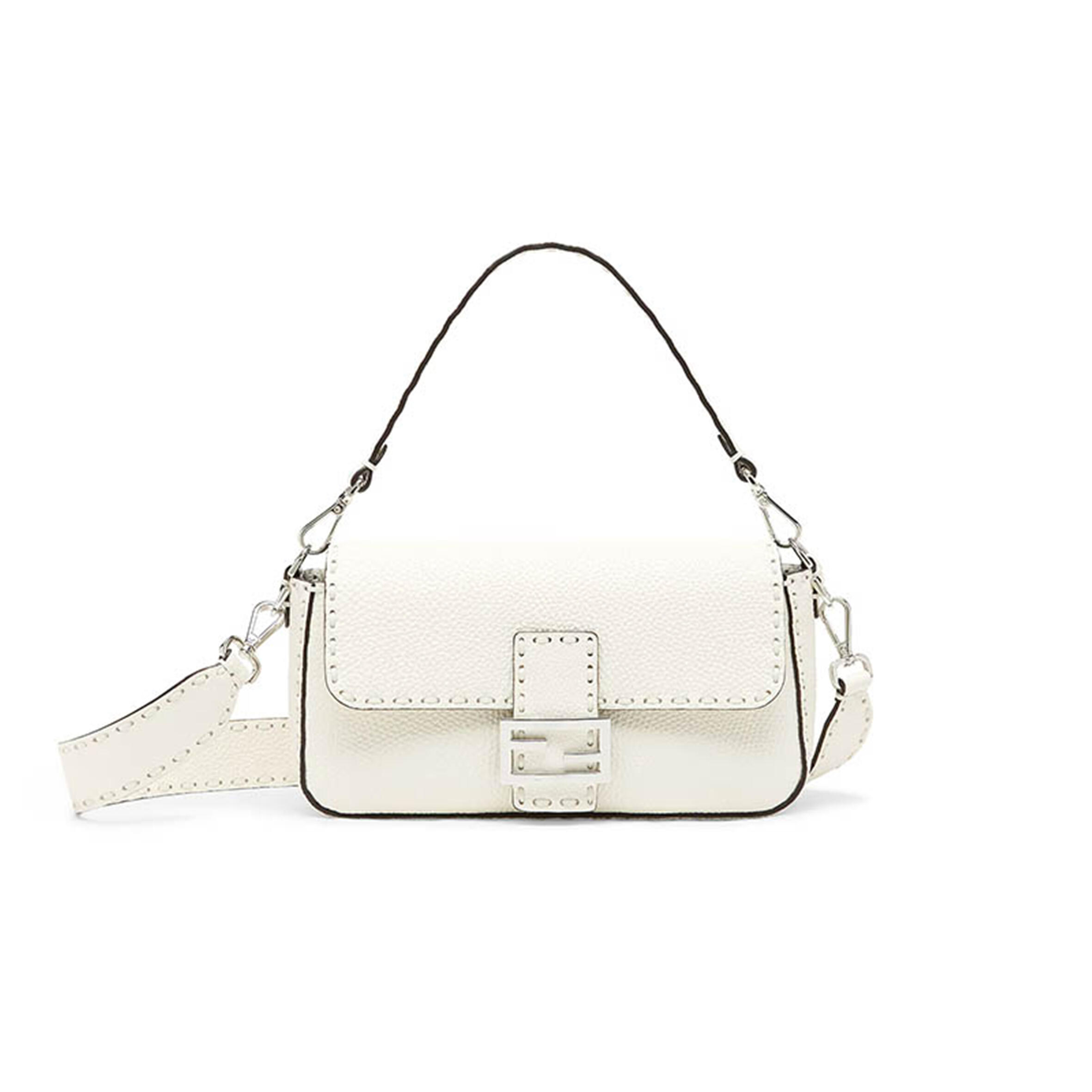 F**di Medium Baguette Bag In White FF Nappa Leather Master Quality