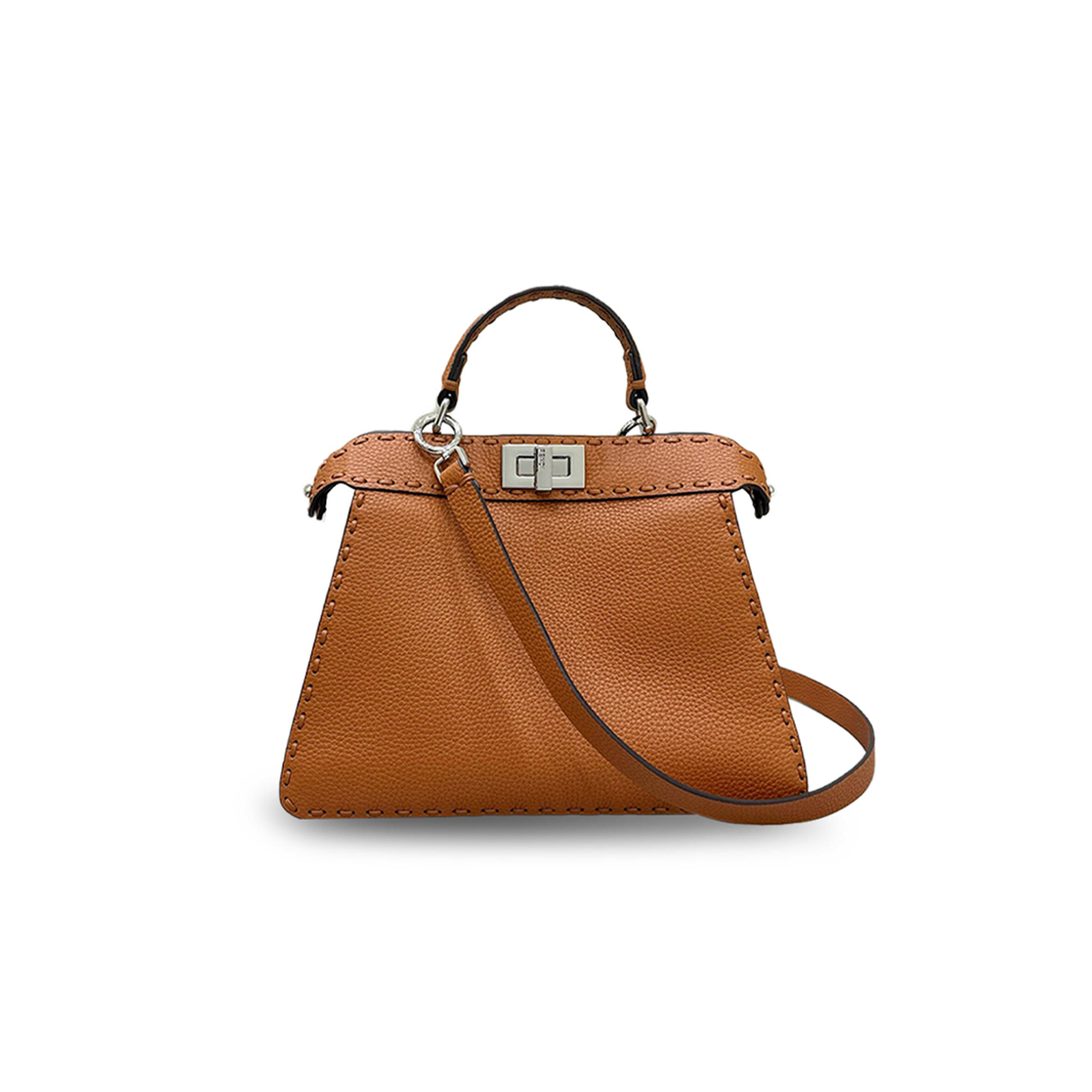 F**di FABRIC VITELLO AJOUR EMBROIDERED MEDIUM PEEKABOO I SEE U GREZZO CUOIO (33*25*11cm) Master Quality