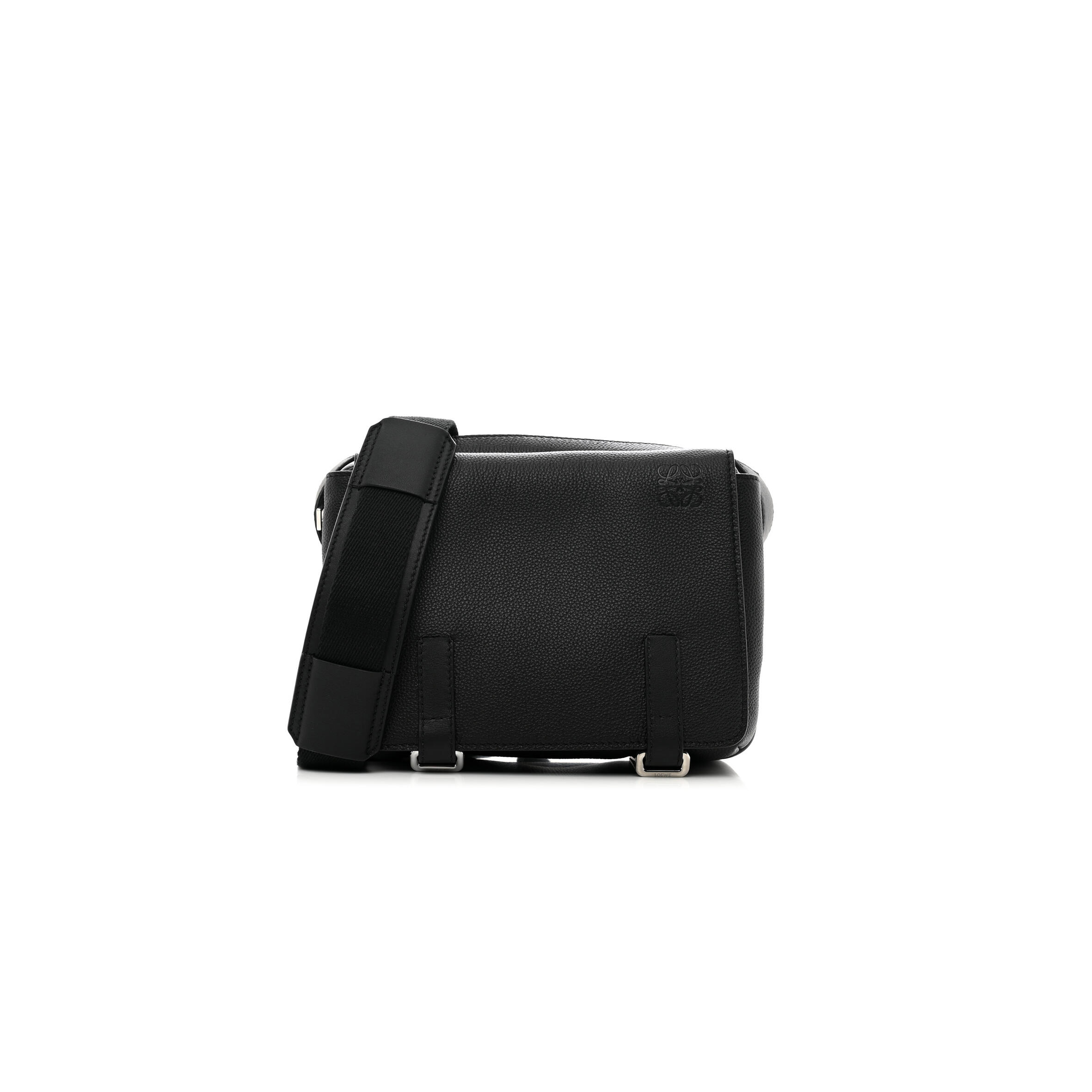 L0ew* SOFT GRAINED CALFSKIN XS MILITARY MESSENGER BAG BLACK (23*18*9cm) Master Quality